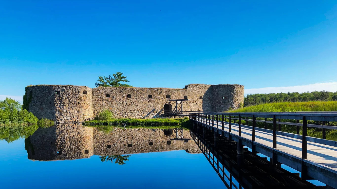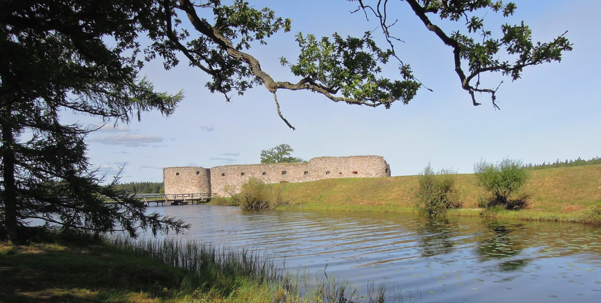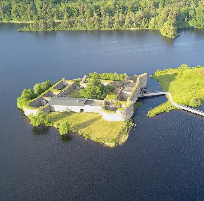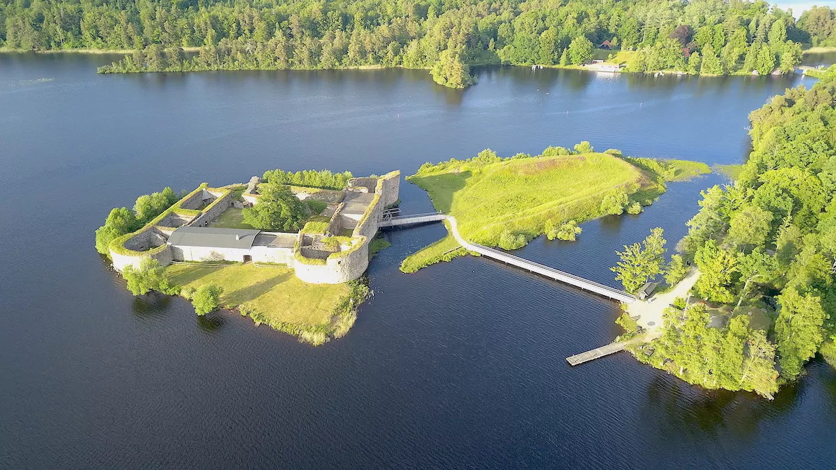Kronobergs slottsruin ligger vid Helgasjöns strand och var från början en biskopsborg. Upprorsmannen Nils Dacke firade jul på Kronoberg 1542.